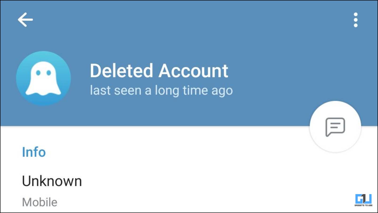 如果用户删除了 Telegram 帐户,您可能会遇到上述一些迹象。点击用户的个人资料照片以验证该帐户是否仍处于活动状态。如果您在名称应有的位置看到“已删除的帐户”,则该人已删除其帐户。